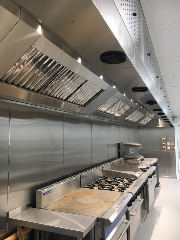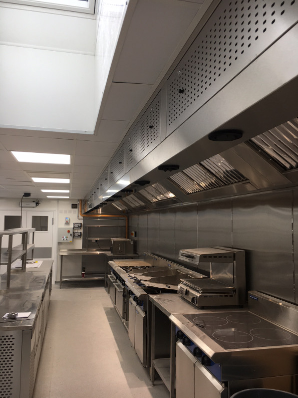 The installed system delivers balanced airflow and energy efficiency, with durable stainless finishes suitable for long-term performance. By combining a clean, functional layout with regulation-compliant safety systems, the project has helped Middleton Hall maintain its reputation for excellence in resident care and operations.